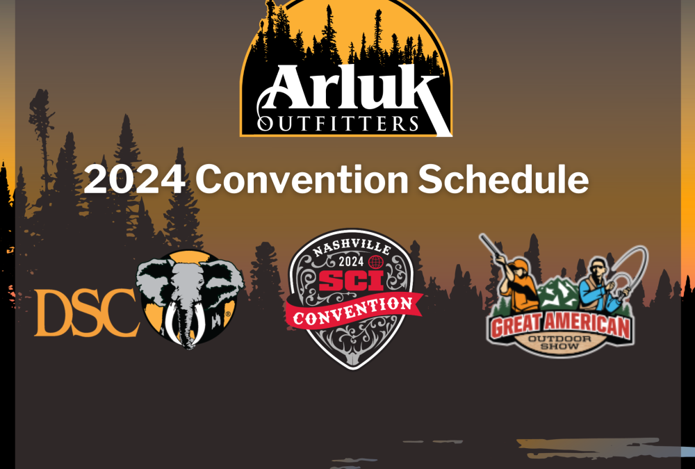 Join Our Cancellation ListSeptember 1, 2023Welcome to Winter!December 3, 2025 November 15, 2023 2024 Convention Dates Are Here! We’ve confirmed our exhibitor registration for the following conventions early in the new year! Detailed information on each event will be made available next month. Share0 Arluk Outfitters Related postsSeptember 1, 2023Join Our Cancellation ListRead moreJanuary 3, 2023Dallas Safari Club Convention & Sporting Expo 2023Read moreJuly 27, 2021Government of Canada Announces Easing of Border Measures For Fully Vaccinated TravellersRead more